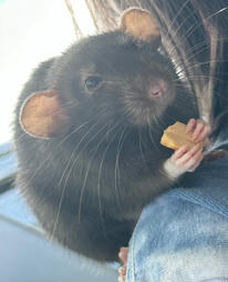 And Jet! (3)They’re my absolute sweeties and I love them so much. My first two were Patches and Jet, my first ever rats in general. And I basically fostered my friends Rat, so I ended up getting another trio with Mellow since it was just two. I got them all at a pet store, my goal was just to give them the best home they could have. To show them love, feed them little snackies, tickle their full bellies, and just give them what they never had. I love them dearly, and I wish Rats lived longer. I’d give up half of my life for them to stay with me for the end of mine if I could. :( Rats are such loving sweeties.